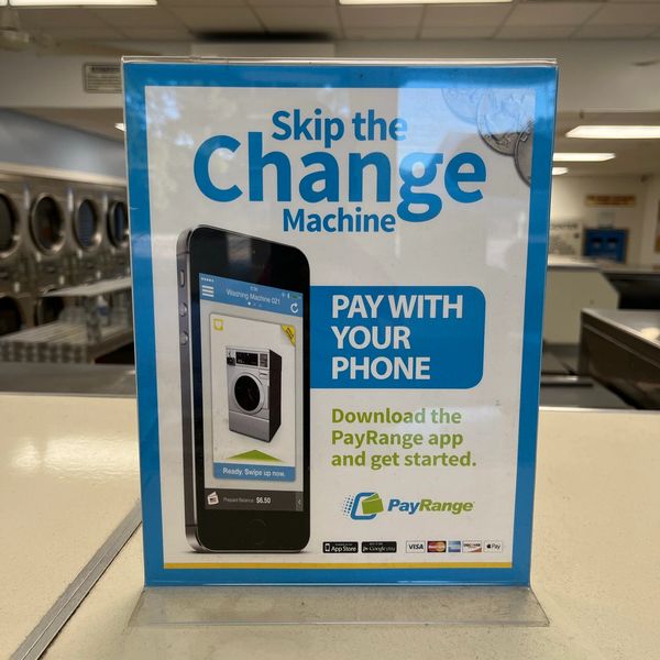 All of our machines accept quarters or download the PayRange app on your phone to use a credit/debit card, apple pay, or bank account to pay at each laundry machine!